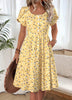 Anabel Yellow Ditsy Floral Print Short Sleeve Boat Neck Dress