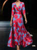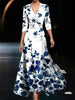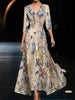 Emily - Printed High Waist Midi Dress with Mid Sleeves