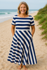 With the Evelina | Feel-Confident Coastal Stripe Maxi Dress, you’ll enjoy style without compromise – ready for everything from a seaside lunch to a festive afternoon in the city.