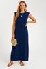Crafted from a soft, lightweight, and breathable fabric, this sleeveless maxi dress gently hugs the body. Its fluid cut enhances every body shape. The slightly structured shoulders add a modern and sophisticated touch.
