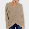 • Elegant V-neck design: The fashionable crossed V-neck and asymmetrical hem give this sweater a unique accent.